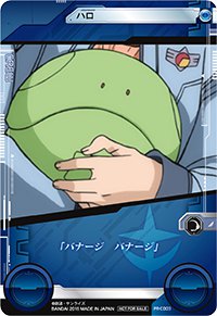 ▲プロモーションスリーブ「フルアーマー・ユニコーンガンダム(覚醒)」40枚1セット(決勝大会優勝者賞)[左]、プロモーションカード「バグ」×1枚(参加賞)[右]
