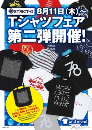 ガンダムの世界観を取り入れたメンズアパレルショップ「STRICT-G」お台場・ガンダムフロント東京店、静岡NEOPASA(下り)店では、前回の好評をうけて「Tシャツフェア 第二弾」が明日8月11日(木・祝)より開催される。