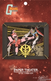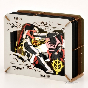 本アイテムは、レーザーで精密にカットされた紙製部品を重ね合わせることで、名場面を作り上げることができるペーパークラフトキット。ラインナップは、初めてザクを撃破した時やシャアとの対決シーンなど、全6種となる。