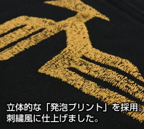 This heavy parka features a print inspired by the embroidery of Char’s cape. It uses raised printing for a three-dimensional effect. Warm, thick fabric makes it great as a three-season coat or winter inner.
