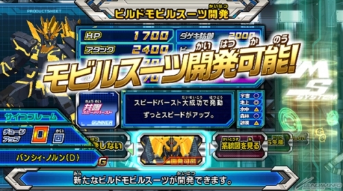 ▲ビルドMS設計図がドロップされると、「ユニコーンガンダム(シールドファンネル装備)」が設計可能に!