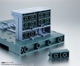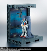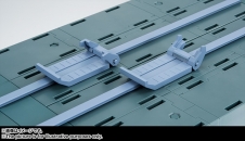 The hangar deck is equipped with a mobile gimmick that makes it possible to replicate the MS hangars found in the series and comes with a crane and catwalk. It is also possible to attach and rearrange multiple suits onto the deck.