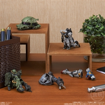 "Mobile Suit Gundam MS Imagination" is a full-color figure series that realistically reproduced the bruised MS on the battlefield. In addition to realistic MS shaping, even the internal frames exposed to scratches are magnificently reproduced. It can be used as a normal figure, as well as a desktop figure, and the top of the desk turns into a battlefield mark just by placing it. There are whole body type and various up type, and it can be made active in various scenes.