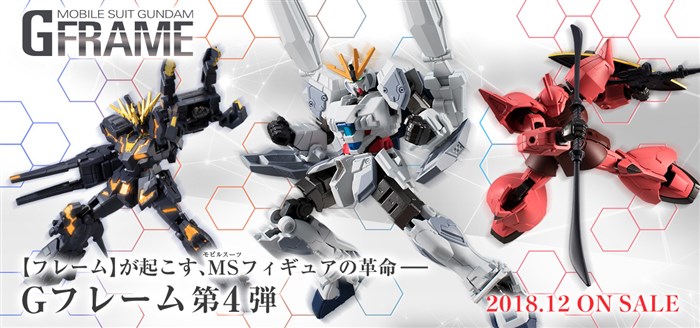 "Mobile Suit Gundam GFrame" Serie 4 con caratteristiche come armatura-Puntellazioni alla figura di Gundam altamente dettagliato saranno pubblicati oggi, 24 dicembre, 2018 (Lun.) in negozi di giocattoli, negozi al dettaglio di elettrodomestici, e negozi online. Prezzo è di ¥ 500 ogni (fiscale exc)