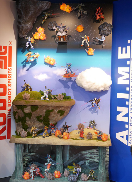 Mostre di incredibile diorama che fare pieno uso delle figure robot della serie di ROBOT TAMASHII sono esposti in attualmente in corso “80’s speciale Robot Exhibition”. Insieme con la prima rivelazione di “ROBOT TAMASHII ZEONG ver. A.N.Ho.MI.” come una fiera di riferimento, “TIPO di zona umida di ROBOT TAMASHII ZAKU II ver. A.N.Ho.M.E”, un preordine popolare corrente, “GYAN TAMASHII ROBOT ver. A.N.Ho.M.E”, programmato per essere rilasciato nei negozi di ogni genere e negozi on-line nel mese di agosto, e molto altro ancora sarà introdotti attraverso questa Mostra. Si tratta di display impressionante che ricreano le battaglie condotte in varie impostazioni, quindi sicuramente essere sicuri di fare una visita allo showroom.