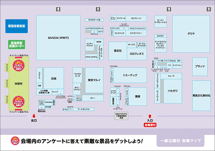Ci saranno mostre innovative dove si potrà sperimentare l'eccitazione di vari hobby, annunci di nuovi prodotti attraenti, campagne regalo per i visitatori, workshop di assemblaggio di kit di modelli in plastica, sessioni di guida di modellini di treni, articoli realizzati in Giappone e all'estero da aziende giapponesi.È un luogo in cui è possibile immergersi completamente nella gioia del modellismo, che si può dire sia l'origine dello spirito manifatturiero giapponese, godendo anche del fascino e del dinamismo delle miniature realistiche.