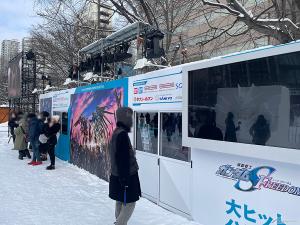 La Rising Freedom Gundam Snow Statue si trova nella sede di Odori del Sapporo Snow Festival, e uno stand speciale con decorazioni per i prodotti correlati è allestito di fronte alla statua di neve per vendite e mostre.Il giorno dell'inaugurazione, domenica 4 febbraio, un gran numero di spettatori si è radunato, formando lunghe file.