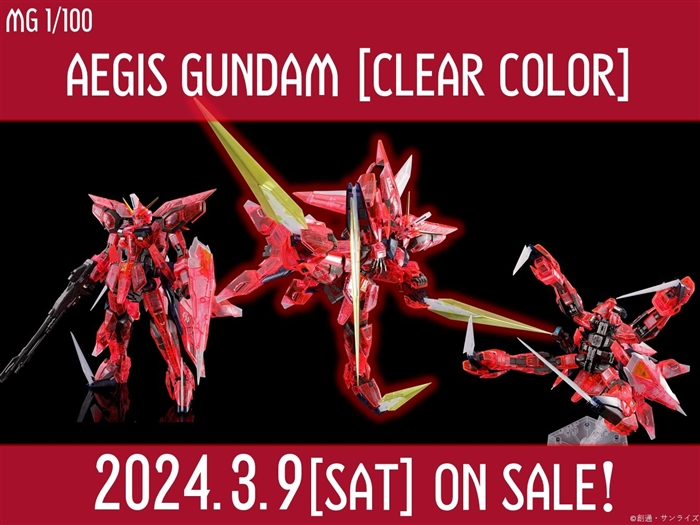 L'evento limitato MG 1/100 Aegis Gundam [Clear Color] sarà in vendita sabato 9 marzo nei negozi THE GUNDAM BASE, strutture generali GUNPLA.Sarà disponibile per 5.610 JPY (tasse incluse).