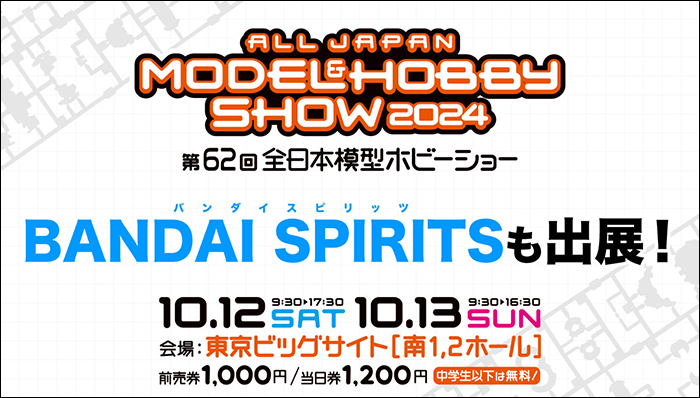 Uno stand BANDAI SPIRITS sarà allestito al 62° All Japan Model & Hobby Show, che si terrà al Tokyo Big Sight sabato 12 e domenica 13 ottobre.