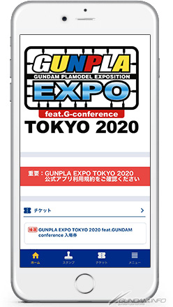 I biglietti First-come-primo-servire per questo evento saranno venduti attraverso l'applicazione ufficiale GUNPLA EXPO TOKYO 2020, l'applicazione mobile ufficiale per questo evento.
