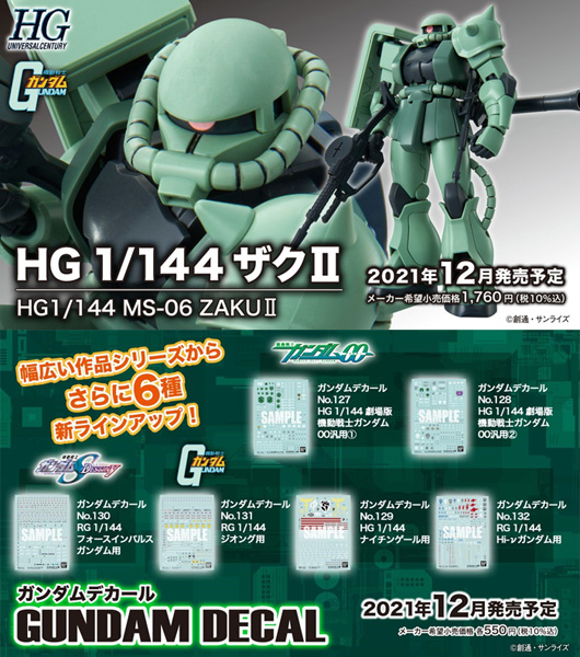 Il rilascio delle decalcomanie HG Zaku II e Six Gundam nel dicembre 2021 è stato rivelato sul sito Hobby Bandai.