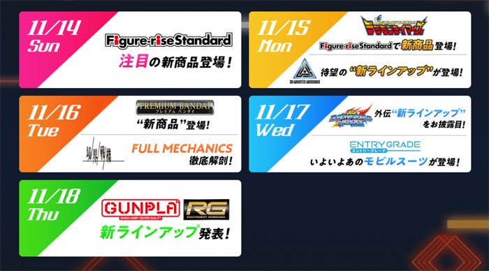 Domani, 18 novembre, la serie Gundam prevede di annunciare una nuova lineup per la loro 1/144 scala RG (Real Grade) serie che utilizza la costruzione di parti dettagliate e ricrea texture per un ulteriore perseguimento della realtà.