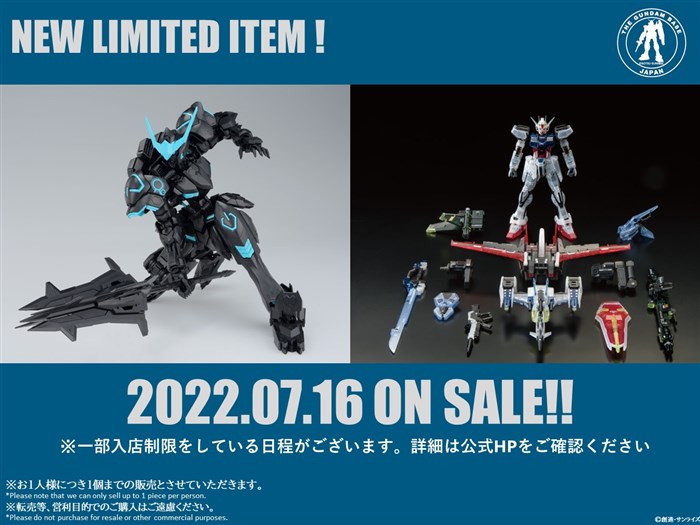 L'evento Limited MG Gundam Barbatos [ricircolo colore/blu neon] e il RG THE GUNDAM BASE limitata Aile Strike Gundam & Skyafferrare er Launcher/Sword Pack set [colore chiaro] andare in vendita oggi sabato 16 luglio presso i negozi GUNDAM BASE, General GUNPLA strutture.