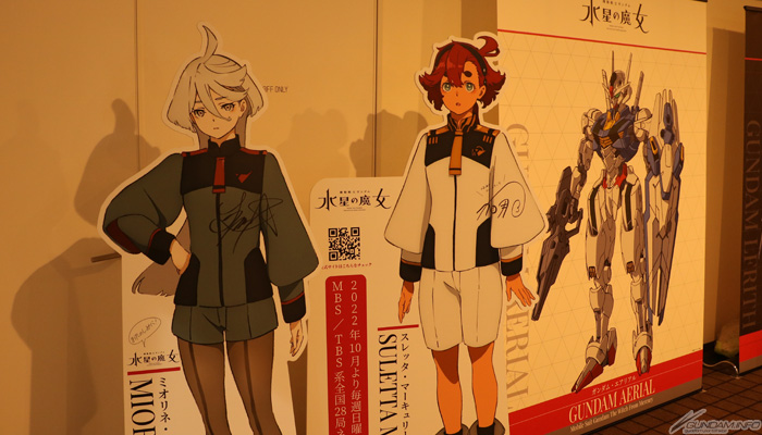 I pannelli di carattere per suletta mercurio e Miorine Rembran hanno firme dalle loro rispettive attrici vocali, Kana Ichinose e Lynn.