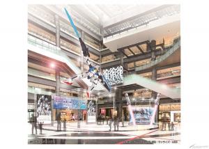 Un pallone alto circa sette metri con Gundam Aerial, il protagonista dellaTuta mobile da Mobile Suit Gundam la strega di mercuriosarà in mostra.Verrà visualizzato quattro volte ogni ora mentre è accompagnato da video e effetti di luce che possono essere visti da vicino.
