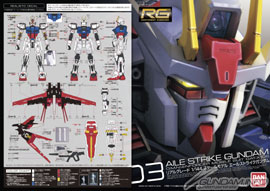 The new flagship line of gunpla, RG (Real Grade,) rolls out its third kit, the RG 1/144 Aile Strike Gundam, today. The MSRP is 2,625 yen.