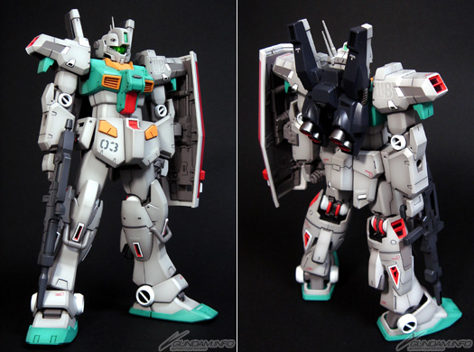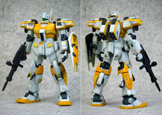 A unit delivered to Londo Bell in U.C. 0093. An older unit pressed back into service due to budgetary limitations, its generator and backpack are nonetheless updated to their most modern versions. To keep up appearances, it's painted in the RGM-86R's coloring. ... Is what I imagined. It was quite enjoyable to put so much thought into the coloring and setting.