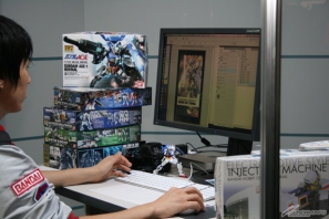 Bandai Hobby Center staff demonstrated CAD Gunpla design, molding, and final finishing.