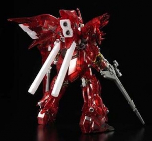 The HGUC Kshatriya pearl clear binder ver.'s 155mm-long large binders are armored in pearl clear, with the main body's armor in clear plastic and the internal workings in silver and gunmetal for a classy look. Match it with the second run of the HGUC Sinanju Red Comet sparkle ver. and let their appeal shine through!