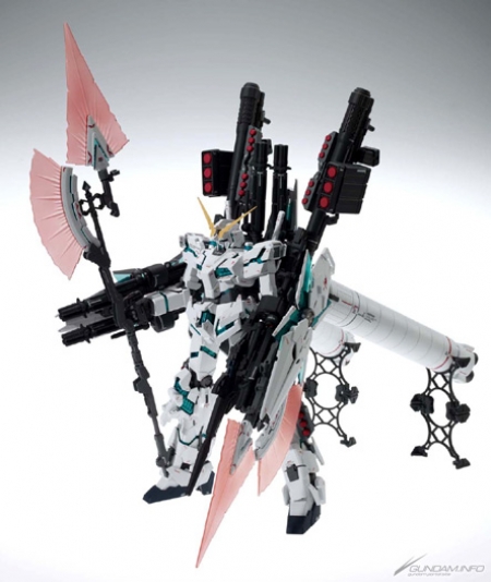 The Full Armor Unicorn Gundam from the later Mobile Suit Gundam UC novels is brought forth, with collaboration from author Harutoshi Fukui and designer Hajime Katoki! It's equipped with 27 different weapons, including the brand-new Hyper Beam Javelin, and it can expose its Psycoframe!