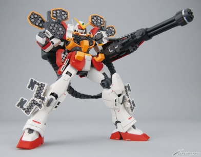 全弾発射のフルハッチオープンを再現するほか、弾帯部分はリード線搭載によりフレキシブルに可動。さらに、左腕の仕込みビームサーベルを選択式で再現するなど、MGならではのギミックが満載のキットとなっている。