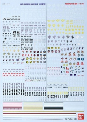 「ガンダムデカールDX」第1弾は、“一年戦争”をメインにしたA4サイズの大ボリュームのデカール。軍マークや、部隊マーク、コーションマーク、ラインマーキングなど汎用性を重視した構成となっており、さらに一部にシルバーのマーキングを採用する事で、用途に幅を持たせた“デラックス”に相応しいアイテムに仕上がっている。