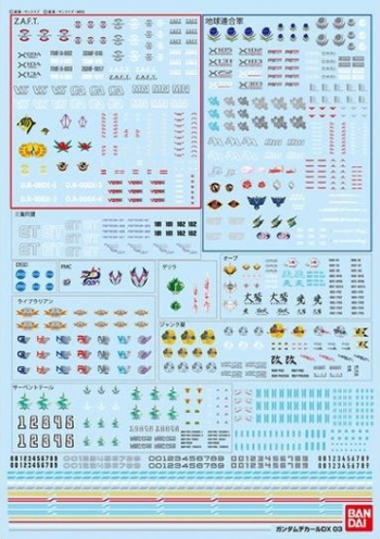 The third Gundam Decal DX 03 set is SEED! Force and squad markings, warning markings, lines and more, plus special silver decals, ass a deluxe touch to any SEED build!
