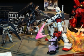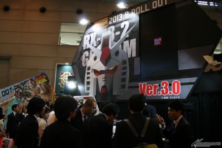 At the show, 75 major manufacturers of model kits, RC cars, and model trains showcase their newest products. Bandai's booth features this summer's headlining MG RX-78-2 Gundam Ver.3.0, along with the latest Gundam UC, Gundam AGE, Gundam SEED< and BB Senshi Gunpla.