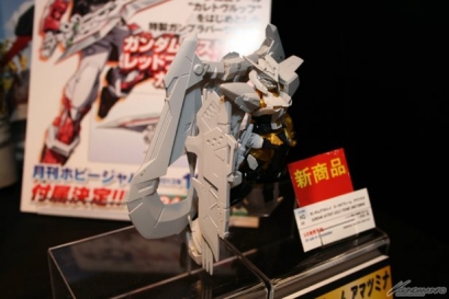 ▲ Hobby Japan's booth displayed lineart of the Caledfwlch custom kit for the Gundam Astray Red Frame, included with every copy of the October issue (due out 8/25)! A lineup of cover models was also on display!