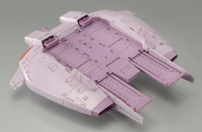 The HGUC Basejabber (Zeta Gundam Ver.) recreates Mobile Suit Zeta Gundam and Mobile Suit Gundam ZZ's coloring. It's also molded differently than the HGUC Basejabber (UC Ver.), with its unique vertical stabilizer properly reproduced. The grips and footrests are mobile, allowing it to fit a wide range of mobile suits and action poses.