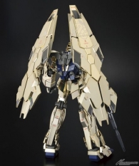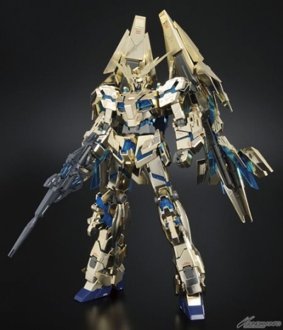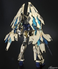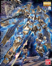 Its golden armor is recreated with plating, and its Psycoframe uses clear parts!It even transforms from Unicorn to Destroy Mode! The kit includes an arsenal of weapons, including an extending Armed Armor DE.