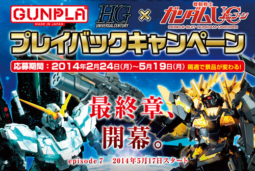 機動戦士ガンダムUC episode 7「虹の彼方に」の映像展開に先駆けて、『ガンダムUC』のHGUCシリーズを対象とした「ガンプラHGUC×機動戦士ガンダムUC プレイバックキャンペーン」が本日2月24日(月)よりスタートした。