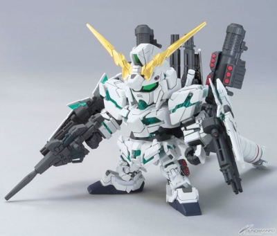 The Full Armor Unicorn Gundam from Gundam Unicorn arrives in BB Senshi form, complete with transformation from Unicorn to Destroy mode. Its Full Armor loadout includes large boosters and anti-ship missile launchers!
