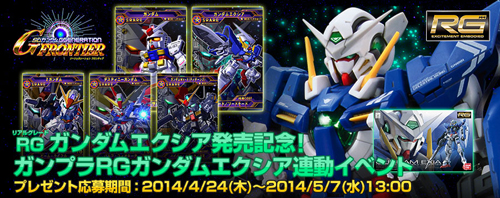 イベントは、ゲーム内で発行されるシリアルコードを、ガンダムパーフェクトゲームス内特設ページにて入力することで、抽選で50名に「RG ガンダムエクシア」を含むRGシリーズ全15種セットがプレゼントされるというもの。