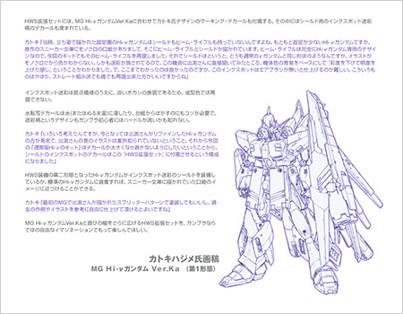 The special page for the "MG Hi-Nu Gundam Ver. Ka HWS Expansion Set", available for preorder now on Premium Bandai, has added an interview with Hajime Katoki.