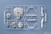 特徴的な頭部のデザインは、「HG ガンダム G-セルフ」の設計データを流用して1/48スケールで正確に再現。ディスプレイ用のアームは根元の回転軸とアーム中央付近、ガンプラ接続部の2ヶ所の角度変更機構により、様々な角度でガンプラを展示できる。