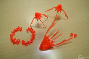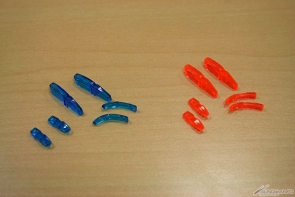 ▲各部のクリアパーツは青とオレンジの2種類、エフェクトパーツは背中の炎と手足に付けるものが用意されている。