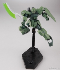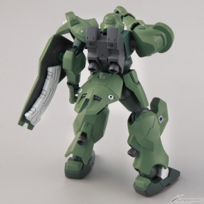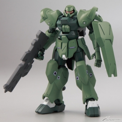 The Amerian Army's new front-line Space Jahannam from Gundam Reconguista in G marches straight into HG! UV-reactive clear parts are used for its unique camera eye, and a tetron sticker replicates the white cross mark on its eye! The included plasma axes, one each in stowed and deployed modes, can be secured to its shield!