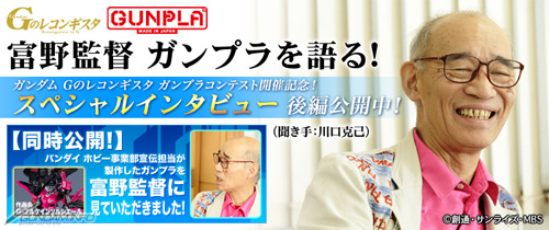 富野由悠季監督が審査員として参加する「ガンダム Gのレコンギスタ ガンプラコンテスト」の開催を記念するスペシャルインタビュー「富野総監督ガンプラを語る!」の後編が、バンダイホビーサイトにて本日4月23日(木)に公開された。