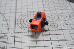 ▲次いで頭部を作成。モノアイは左右に稼働するので、様々な表情を楽しめる!