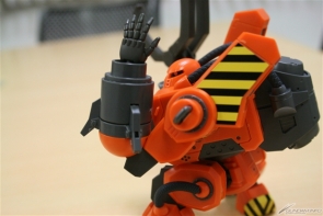 無骨なデザインに黄と黒の縞模様で、重機のような印象を受ける。「モビルスーツ」ではなく「モビルワーカー」ということで、シルエットもどこか“乗り物”に近く感じるものの、漂う力強さはモビルスーツに勝っている気もする。