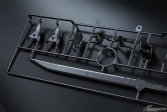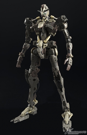 The external armor will be based on the hypothetical properties of the in-show nano-laminate armor. The seven included parts runners will receive plating, metallic, pearlescent, and other coats to evoke a realistic feel. Along with smoothbore cannon and sword, it will also include open manipulators for a variety of posing options.