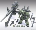 Mobile Suit Gundam Thunderbolt’s heavy-backpacked Zaku II arrives as a set with its sniping ”Big Gun”! It’s remolded in Thunderbolt colors and features foil decal stickers and a new box. The Big Gun’s bipod features nut-and-bolt joints for added stability, and it has a translucent red sensor! The movable left grip lets a range of MS fire it. Also included is a booklet with full details on its decals.