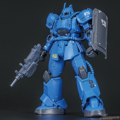 The blue prototype mobile suit that Ramba Ral pilots in Mobile Suit Gundam THE ORIGIN IV Eve of Destiny has been made into a kit! A heat hawk and machine gun which even used during history’s first ever mobile suit battle, The Battle of Mare Smythii, are included! Its shield can be mounted onto its arm and all armored parts, including its characteristic shoulder armor, have been replicated in precise detail! The markings on each part of its body has been replicated through tetron stickers.