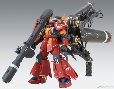 Char Aznable’s exclusive red suit from THE ORIGIN IV Eve of Destiny has been made into a kit! In addition to the newly modeled “belt-fed MS machine gun,” a characteristic armament from THE ORIGIN arc, the suit is also equipped with spike armor on its shoulders which is a first for an old Zaku! Its backpack is the same shape as ZAKU II’s and calls the MS-06 line to mind. Included are 2 variations of the Heat Hawk, for hand and mounting usage, and tetron stickers for the markings on each part!