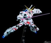 A special spec UNICORN GUNDAM has been made in celebration of the conclusion of Mobile Suit Gundam UNICORN RE:0096! The model has armor with a gorgeous titanium finish and a choice between its two psycho frame versions: red or green! Its backpack and feet have been replicated with blue coating and is also equipped with a transformation mechanism to shift into Unicorn Mode.