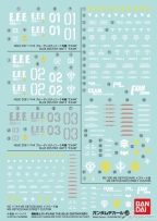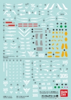 The new six decal models can be used on all scales, as the multiuse is a high water transfer decal. From the RG series: Sinanju, MS-06R Multiuse 1, 00 Quan[T], MG GM Sniper II/GM Comand, THE ORIGIN Multiuse 3 and THE BLUE DESTINY Multiuse 1.