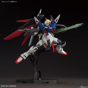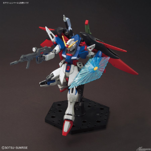 Da "Mobile Suit Gundam SEED DESTINY, il Gundam di Destiny compare nell'ultimo formato HG. Le articolazioni del kit appena modellato consente di creare azioni pose proprio come nel anime. L'armatura laterale scivola indietro per evitare interferenze con le gambe, e la struttura non limita la sua portata mobile. Oltre alla "Ali di luce" parti trasparenti, "Palma fiocina" mano aperta, Di arondight, pistola a fascio lungo raggio ad alta energia, e fascio Boomerang, viene fornito con numerosi armamenti.