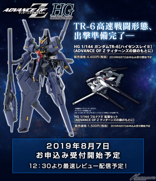 Da "Tuta Mobile - Gundam" storia laterale "AVANZAMENTO DI ~La bandiera dei Titani" arriva il gunpla "HG Gundam TR-6 È possibile: [Haze'n-Thley II]" e "Set di espansione HG Hrududu" con pre-ordini accettati a partire dal 7 agosto, 2019 (sposare).