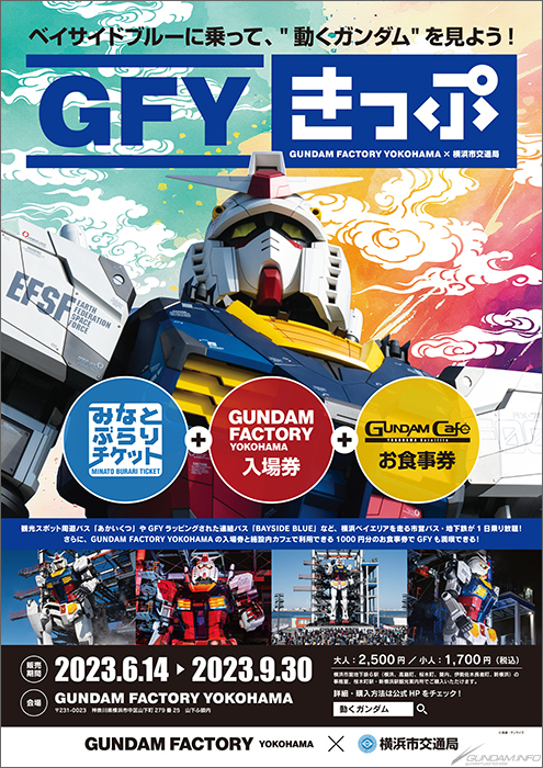 GFY biglietti realizzati attraverso una collaborazione con GUNDAM FACTORY YOKOHAMA (GFY), la struttura con il movimento a grandezza naturale Gundam, e il Yokohama City Transportation Bureau sono in vendita per un periodo di tempo limitato.